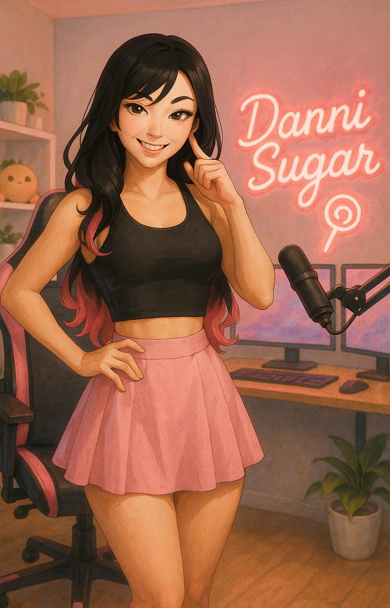 Danni Sugar is a bold content creator, captivating audiences with her playful energy and unique style through reaction videos and live streams that spark curiosity and deliver delightful chaos. Whether she's teasing in a live stream or reacting with that signature smile, Danni brings a blend of sweet charm and spicy attitude thatโs impossible to ignore.